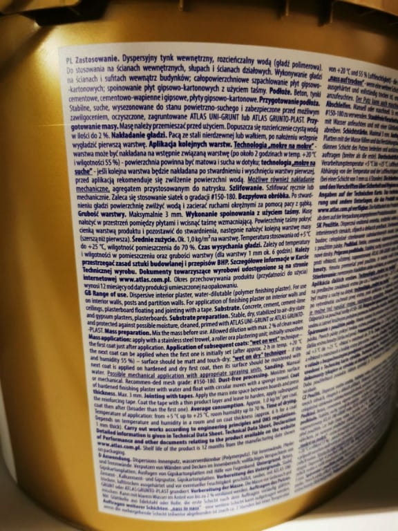 Produkt charakteryzuje się wysoką elastycznością, co czyni go odpornym na pęknięcia, gwarantując długotrwały, estetyczny wygląd powierzchni. Gładź Atlas GTA jest wszechstronna – można ją nakładać ręcznie (wałkiem lub pacą) oraz maszynowo (agregatem natryskowym), co umożliwia szybkie i efektywne przeprowadzenie prac. Co więcej, dzięki technologii „mokre na mokre”, drugą warstwę można aplikować już po dwóch godzinach.