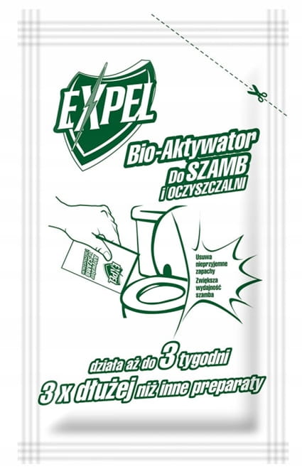 Expel Bio-Aktywator w formie saszetki to wygodny i skuteczny preparat mikrobiologiczny, który pomaga udrożnić system kanalizacyjny i drenażowy, likwiduje nieprzyjemne zapachy oraz hamuje rozwój szkodliwych drobnoustrojów.