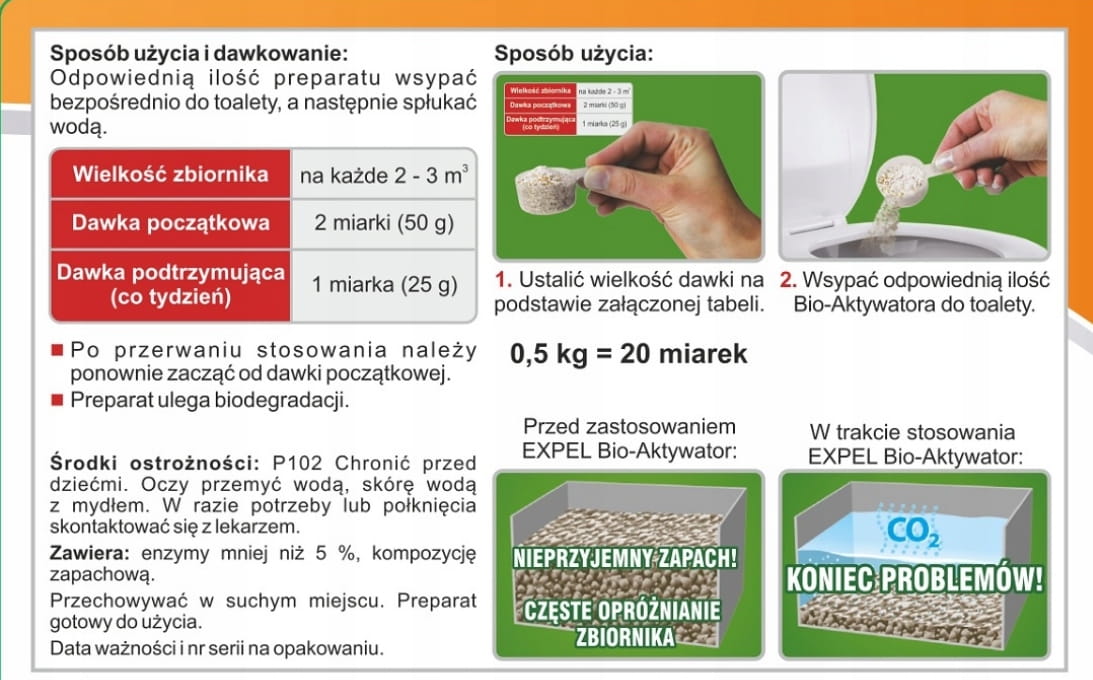 Expel BIO-AKTYWATOR to nowoczesny, mikrobiologiczny preparat przeznaczony do szamb, przydomowych oczyszczalni ścieków oraz latryn.