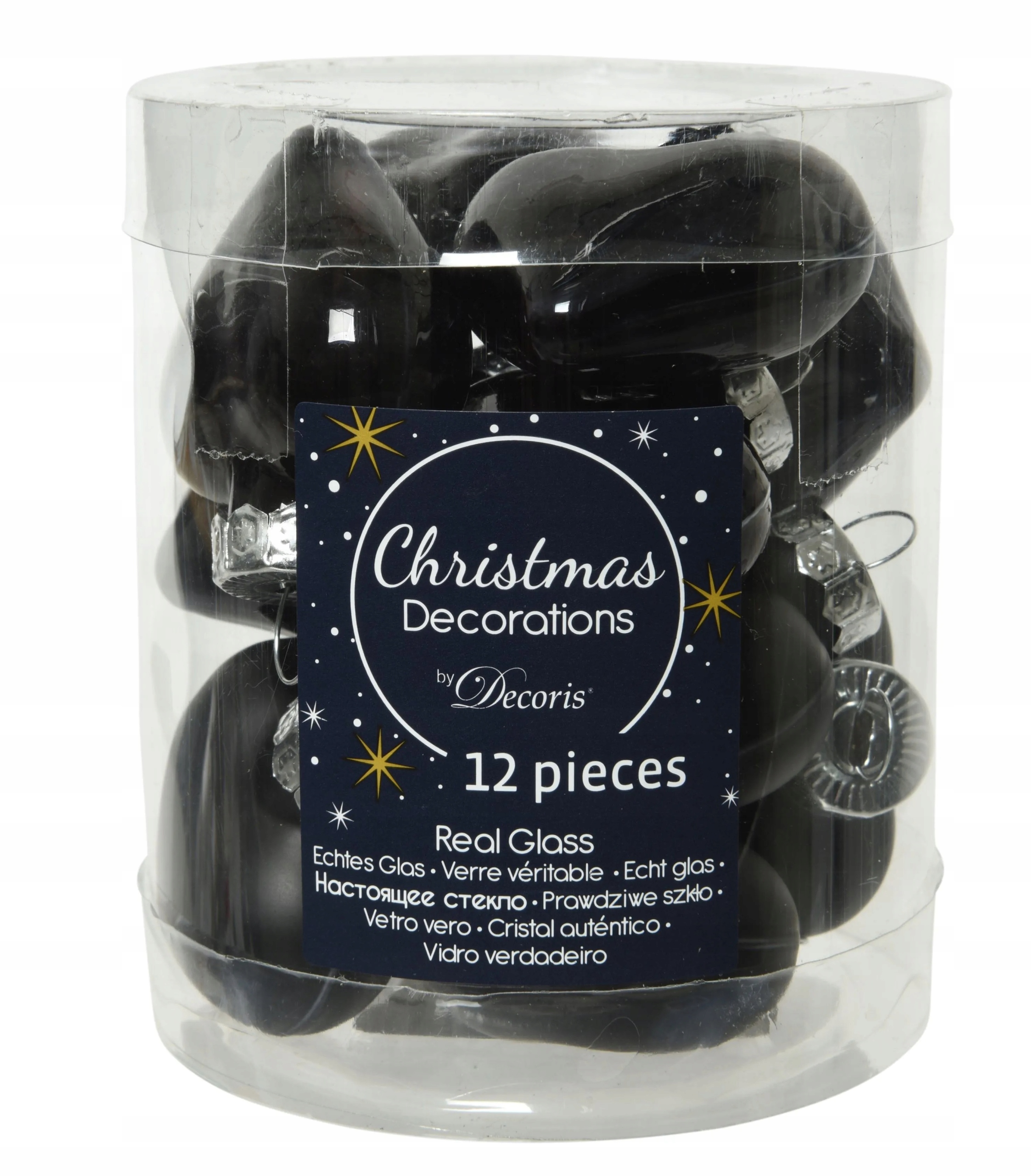 Zestaw 12 szklanych czarnych bombek choinkowych 5cm