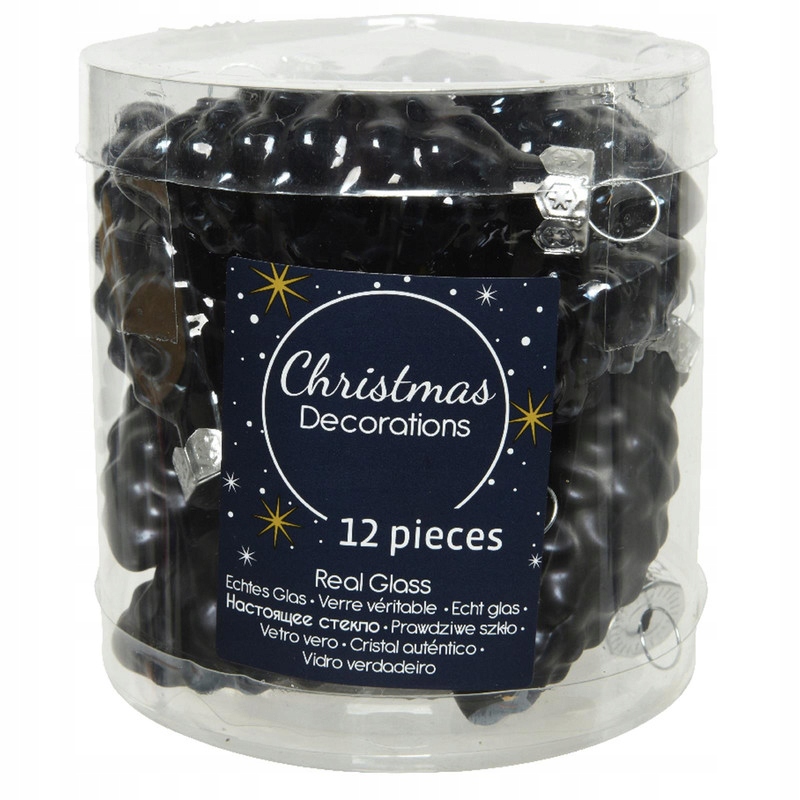 Bombki choinkowe czarne szyszki zestaw 12 szt. 6 cm