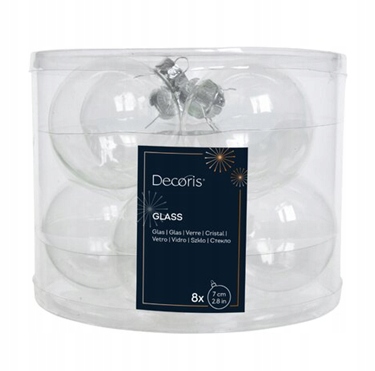 Bombki szklane, przezroczyste, średnica 7 cm, zestaw 8 sztuk