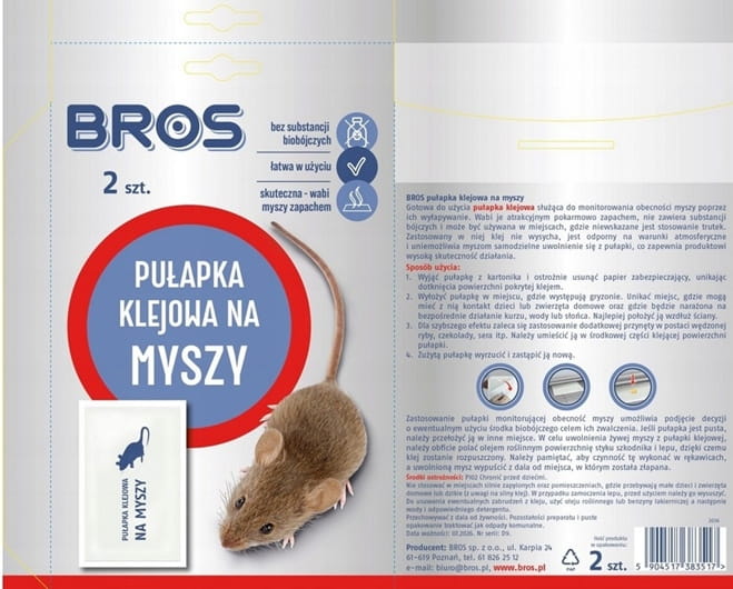 Bros Pułapka klejowa na myszy to innowacyjne rozwiązanie do monitorowania i wyłapywania myszy w sposób bezpieczny i bez użycia substancji trujących.