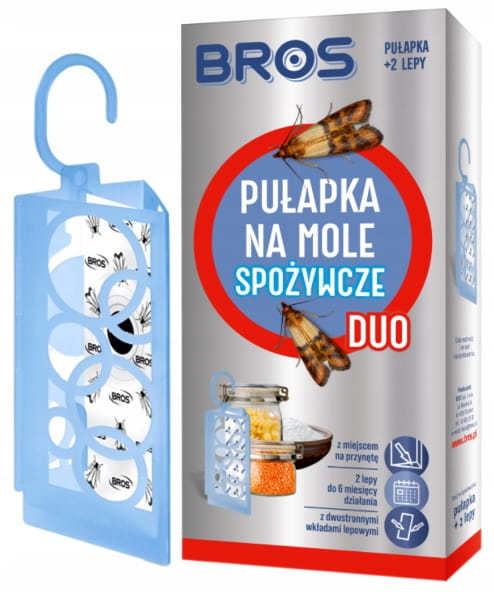 Praktyczna pułapka lepowa na mole spożywcze DUO marki Bros to skuteczny sposób na monitorowanie obecności szkodników w kuchniach, spiżarniach, magazynach oraz szafkach kuchennych.