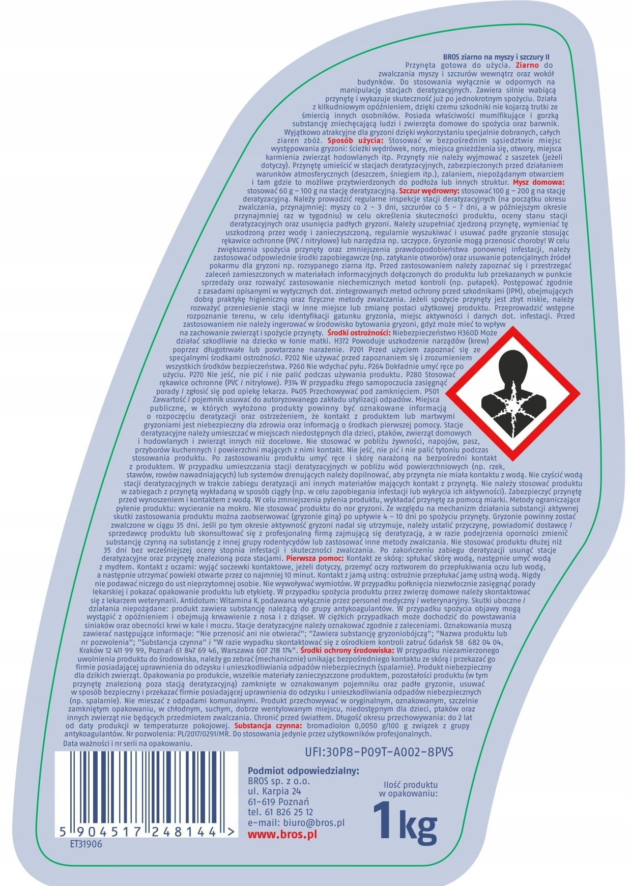 BROS Ziarno na myszy i szczury to gotowa do użycia przynęta w formie ziaren zbóż, skutecznie eliminująca gryzonie wewnątrz i wokół budynków.