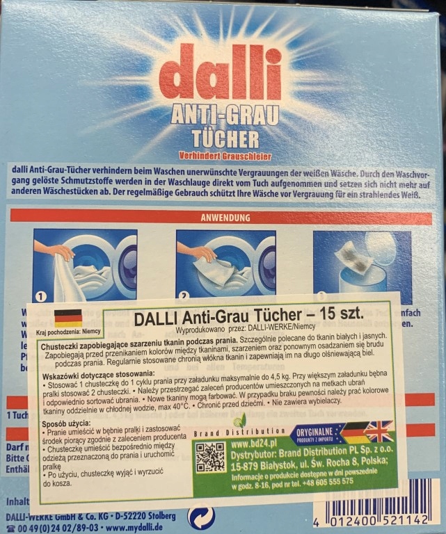 Chusteczki Dalli do prania białych ubrań pozwolą Ci bez obaw włożyć razem do pralki białe tkaniny o różnym stopniu zabrudzenia. Chusteczki natychmiast pochłaniają uwolniony z ubrań brud i zatrzymują go w swoich włóknach, chroniąc śnieżną biel Twoich ulubionych ubrań. Po praniu tkaniny są idealnie czyste bez śladu farbowania lub szarzenia.