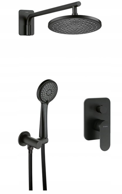 Deszczownica prysznicowa podtynkowa z baterią i 3funkcyjną słuchawką Czarna Alpinia