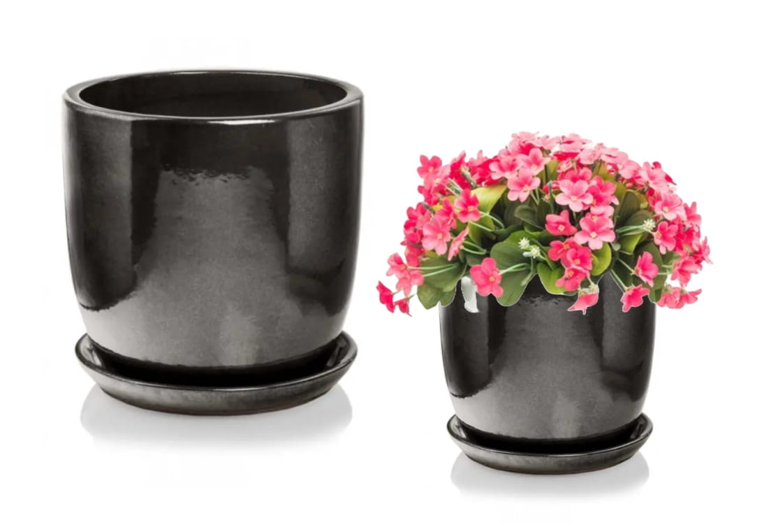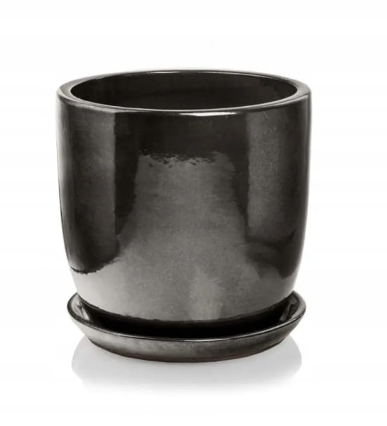 Doniczka ceramiczna grafitowa z podstawką 23x20cm