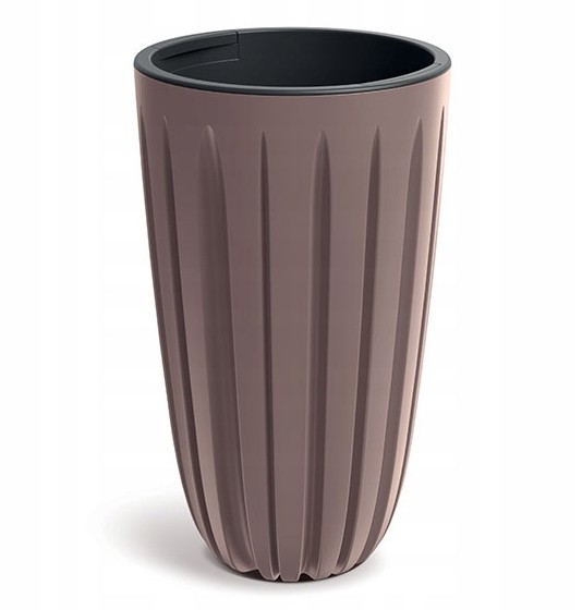 Doniczka plastikowa osłonka ryflowana wysoka brązowa marsala 29cm Wario
