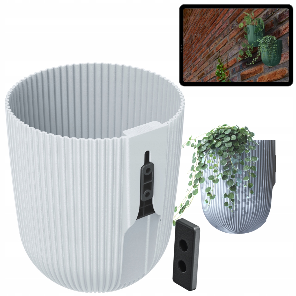 Dzięki dyskretnemu systemowi montażu doniczka stabilnie przylega do powierzchni, tworząc estetyczny efekt „wiszącej” kompozycji roślinnej.