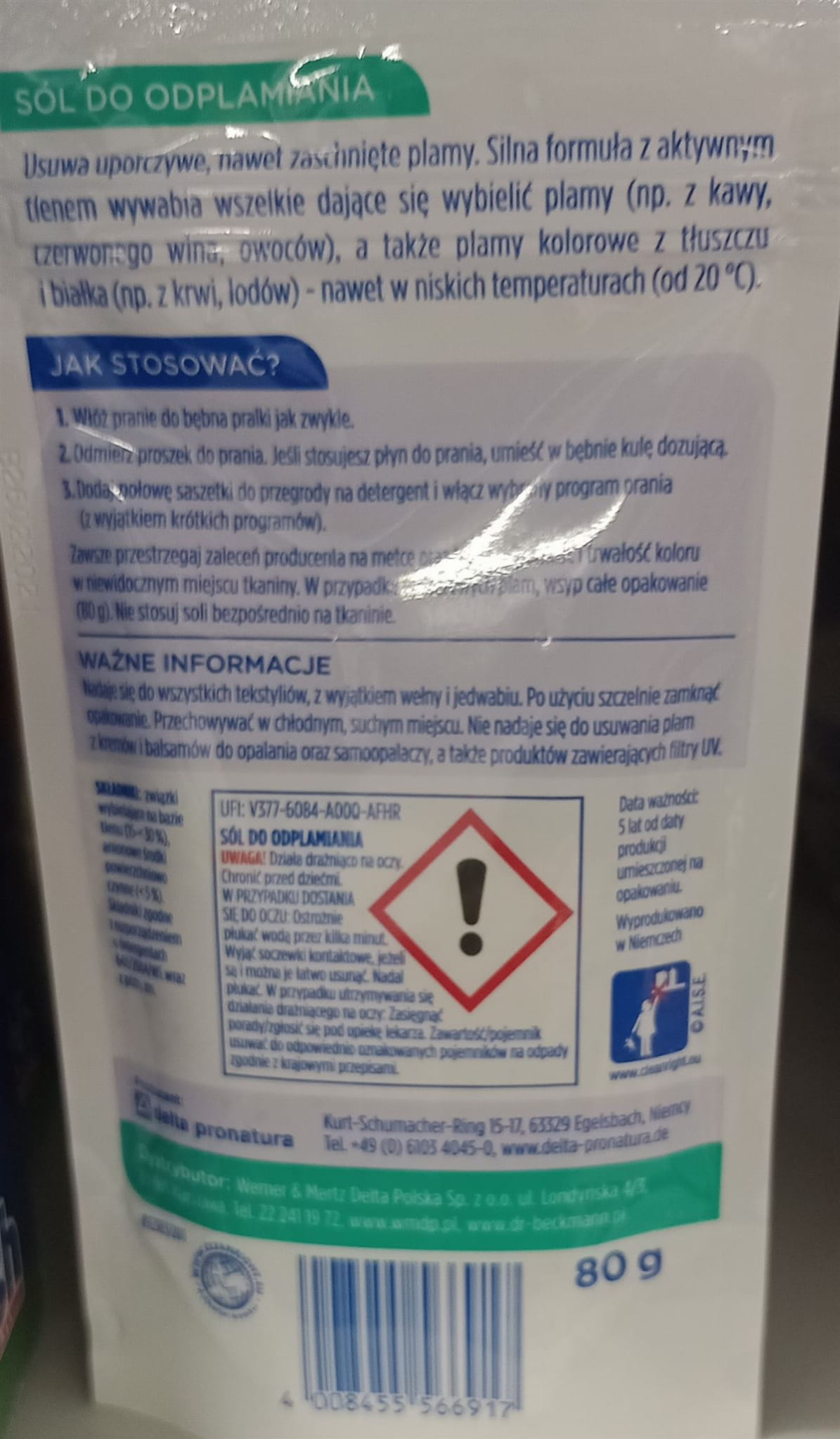 Sól do odplamiania Dr.Beckmann w saszetkach to produkt, który niezwykle skutecznie usuwa uporczywe plamy. Jest bezpieczny dla większości tkanin również białych. Saszetki można stosować z dowolnymi środkami piorącymi. Wykazują działanie również w niskich temperaturach od 20°C. Pochodne celulozy wiążą brud w mydlinach, co zapobiega szarzeniu tkanin.