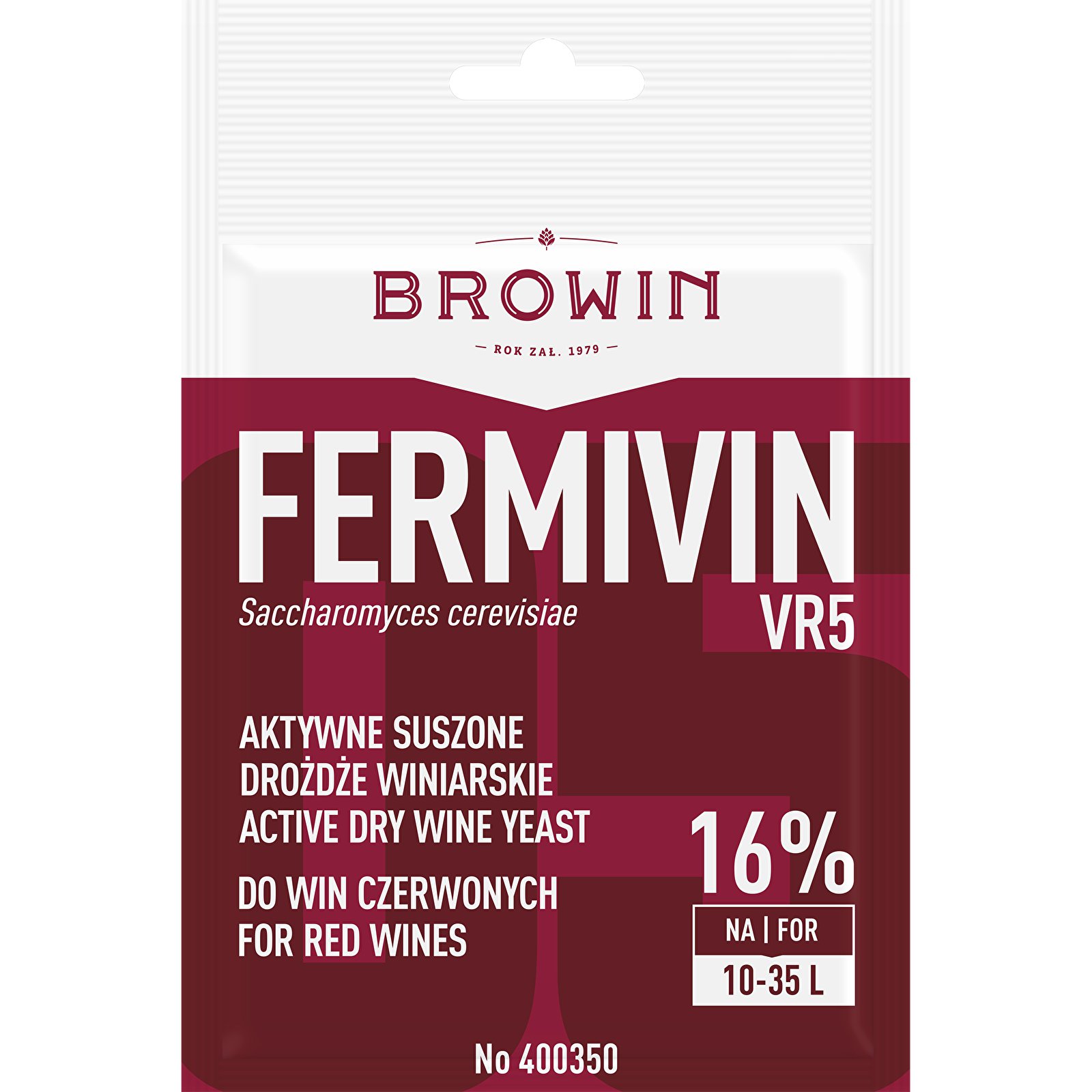 Drożdże winiarskie suszone marki Browin przystosowane są do win czerwonych z aronii, jeżyn, czarnego bzu, porzeczek (do 16% alkoholu). Dzięki drożdżom nie musimy martwić się o barwę, bukiet, czy dobre odfermentowanie. 7g drożdży wystarcza na nastaw od 10-35 L.
