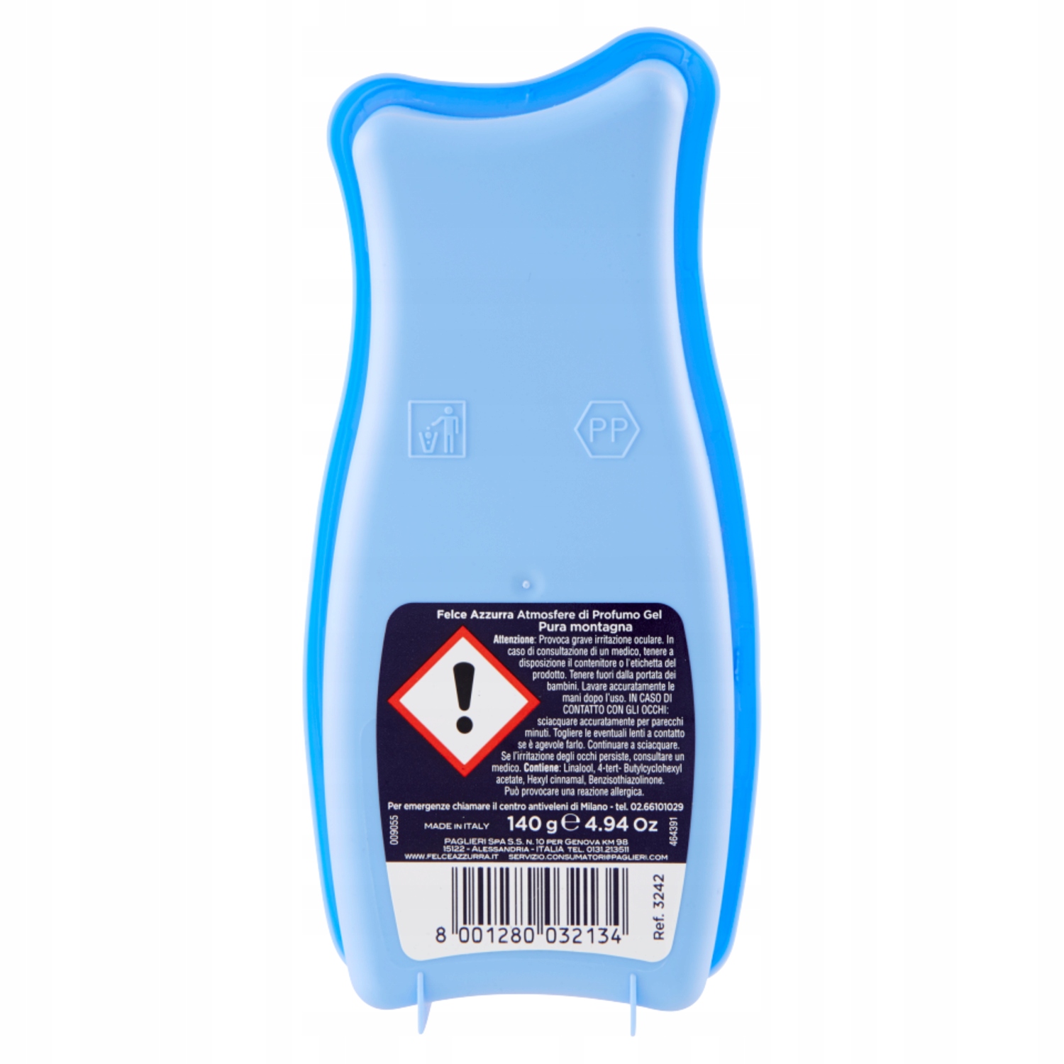 Felce Azzurra Pura Montagna to odświeżacz powietrza w żelu, który przenosi świeżość górskiego powietrza prosto do Twojego domu. Kompozycja zapachowa łączy orzeźwiające nuty cytrusowe z głębokimi, ciepłymi akordami drzewnymi, tworząc wyważony i naturalny aromat.