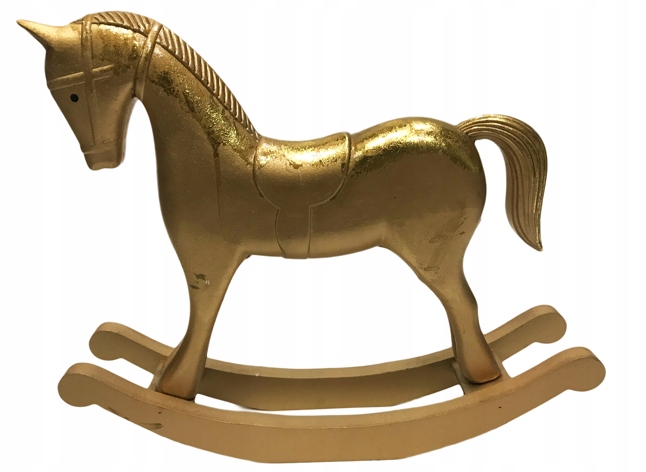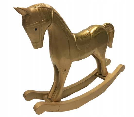 Figurka drewniana konik na biegunach złoty 38 x 31 cm