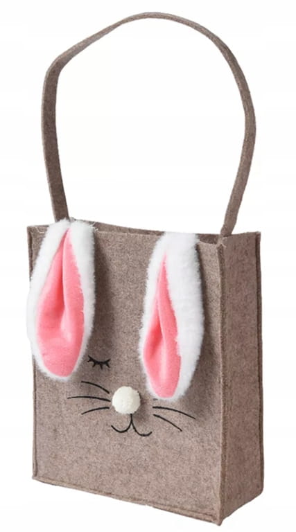 Filcowa torebka wielkanocna z pluszowymi uszami królika 42x20x7cm brązowa