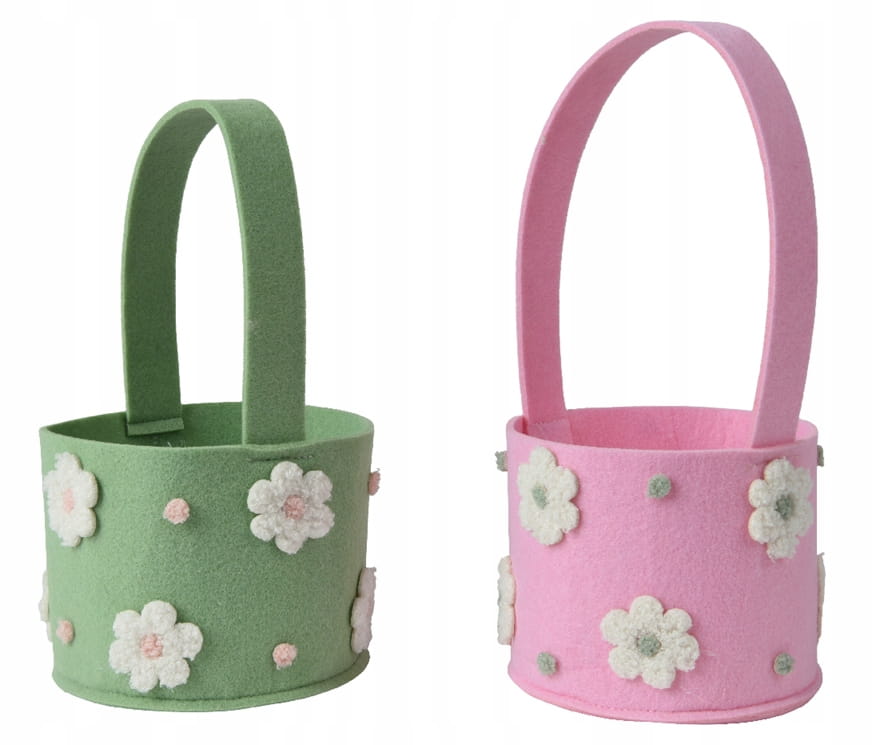 Wykonany z lekkiego, ale trwałego filcu, dostępny jest w dwóch kolorach: różowym i zielonym. Idealnie sprawdzi się jako koszyczek wielkanocny, organizer lub torba na drobiazgi.