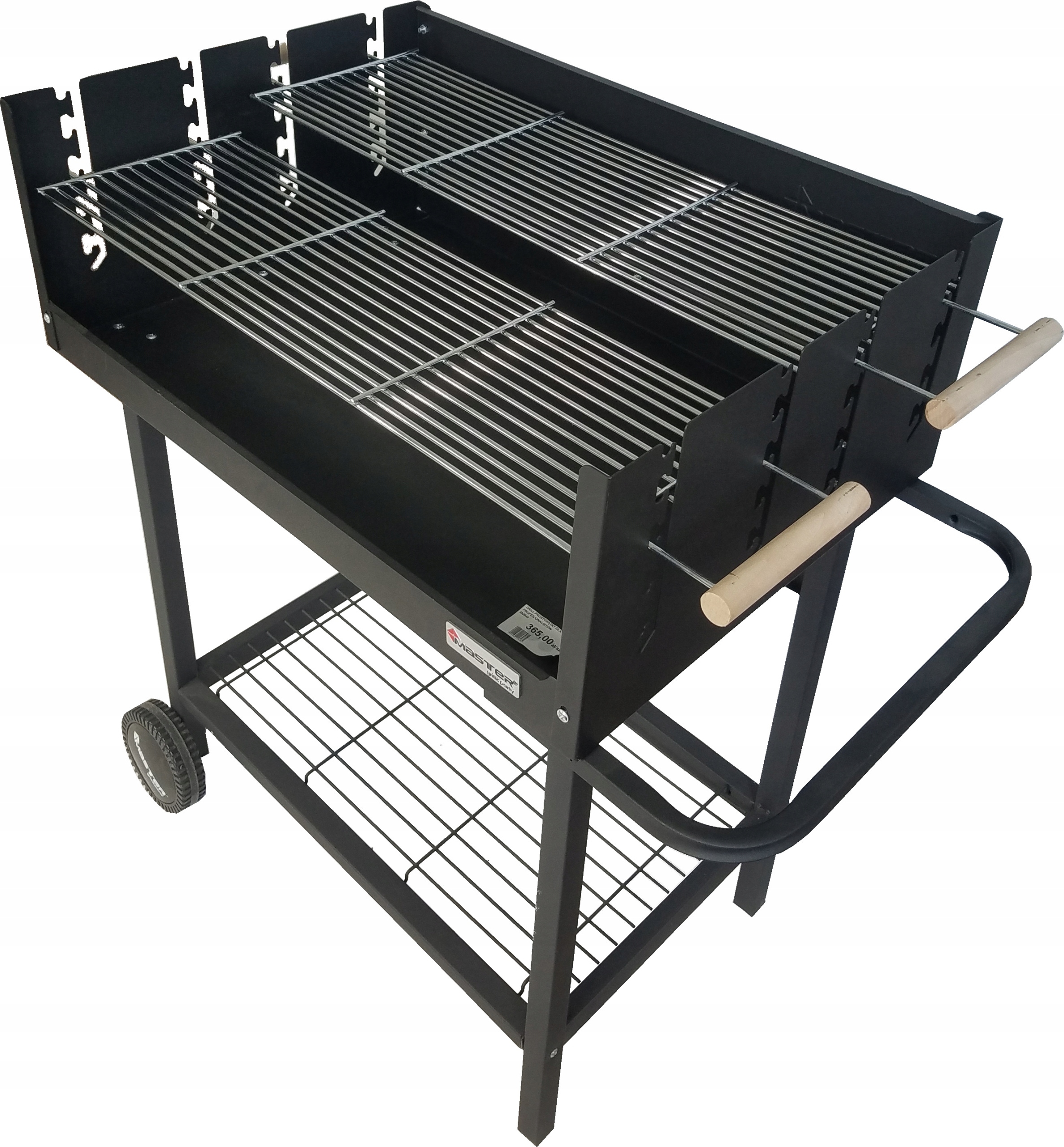 Wspólne spędzanie czasu podczas grillowania stało się szalenie modną rozrywką, dlatego taki grill jest nieodzownym atrybutem każdego posiadacza domu z ogrodem lub działką. Ma zwiększoną powierzchnię grillowania, za sprawą dwóch rusztów ze stali chromowanej, co daje możliwość przyrządzania urozmaiconych potraw lub większych ilości w tym samym czasie. Praktyczna półka pozwala ustawić pojemnik z mięsem, narzędzia do grillowania i inne przedmioty. Wygodne kółka umożliwiają łatwe przenoszenie grilla z miejsca na miejsce.