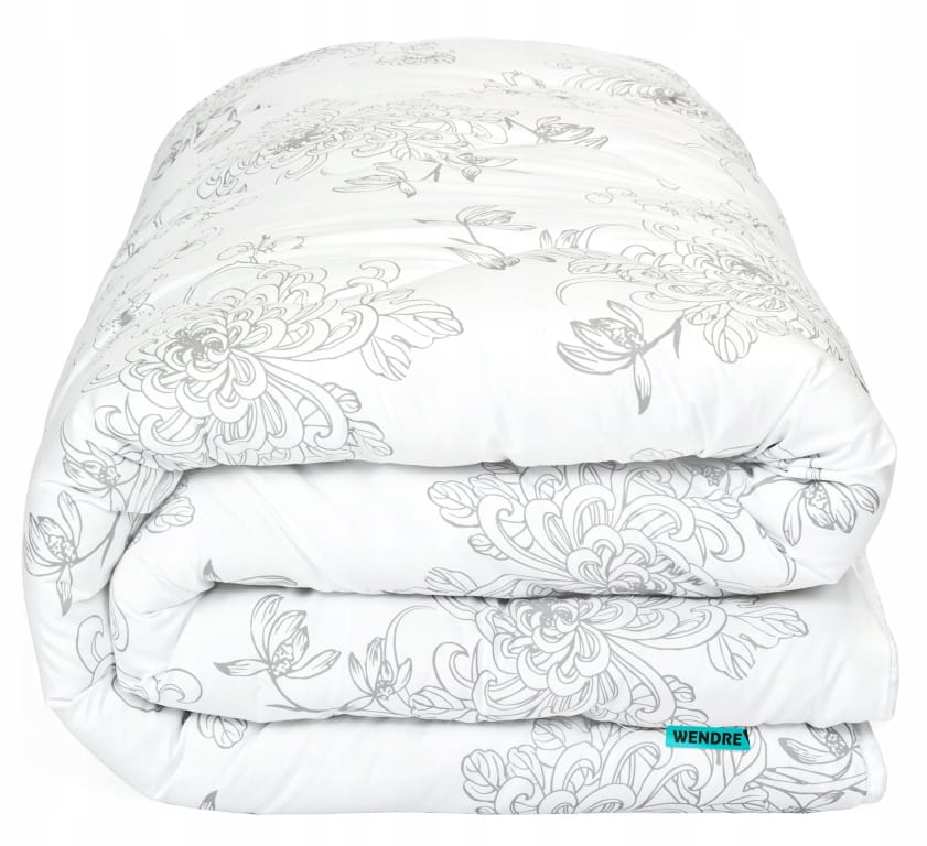Kołdra antyalergiczna całoroczna140×200cm Biała z botanicznym nadrukiem