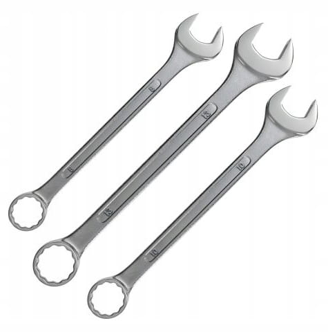 ✅ Zróżnicowane rozmiary – Zestaw zawiera trzy klucze (8 mm, 10 mm, 13 mm), umożliwiające pracę przy różnych elementach mechanicznych, nakrętkach i śrubach.