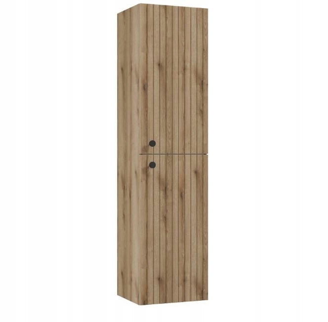 Słupek łazienkowy wiszący 140x35 cm Dąb Evoke - Wiszący słupek łazienkowy o wymiarach 140x35 cm to doskonałe rozwiązanie dla tych, którzy potrzebują dodatkowego miejsca do przechowywania w łazience. Wykończony w stylu dąb evoke z ryflowanymi lamelami, oferuje nowoczesny wygląd oraz przestronność. Dzięki swojej wysokości i wąskiej konstrukcji, jest niezwykle funkcjonalny, a jednocześnie nie zajmuje dużo miejsca.