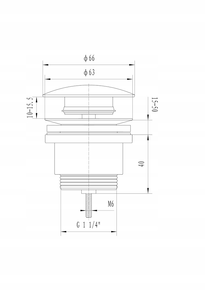 Spust do umywalki z okrągłym dużym korkiem. Korek posiada zatrzaskowy mechanizm zamykający typy „klik-klak”. Wykonany jest w kolorze czarnym matowym, który stanowi idealne uzupełnienie armatury łazienkowej o podobnym wykończeniu.