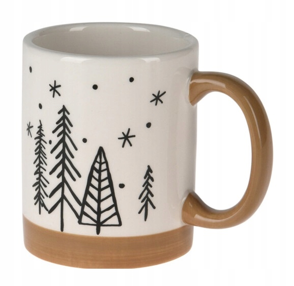Kubek ceramiczny świąteczny biało-brązowy