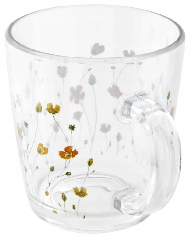 Kubek szklany o pojemności 350 ml to idealne połączenie funkcjonalności i estetyki. Ozdobiony subtelnym motywem żółtych kaczeńców, wprowadza do codziennego picia kawy, herbaty czy naparów wyjątkową, wiosenną atmosferę.
