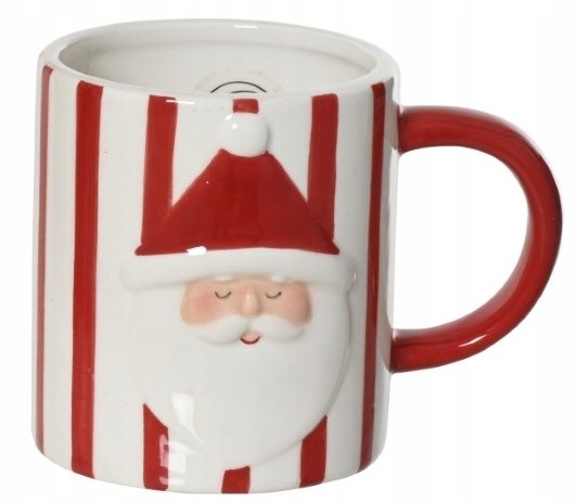 Uroczy kubek świąteczny z dolomitu w radosnej, czerwono-białej kolorystyce to idealny dodatek na zimowe dni. Każdy model ozdobiony jest wypukłym motywem 3D: