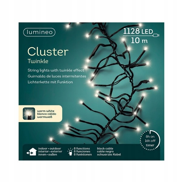 Lampki świąteczne sprawdzą się zarówno na choinkę wewnątrz jak i na zewnątrz domu. Światełka bożonarodzeniowe mają stopień ochrony IP44, więc przeznaczone są także do zewnętrznych dekoracji domu. Produkt posiada aż 8 trybów migotania. Idealnie nada się do ubierania dużych choinek zarówno przed domem jak i w domu.