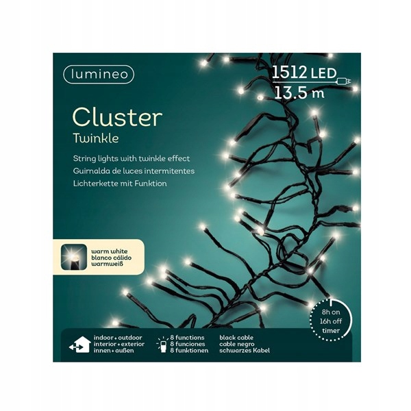 Lampki świąteczne sprawdzą się zarówno na choinkę wewnątrz jak i na zewnątrz domu. Światełka bożonarodzeniowe mają stopień ochrony IP44, więc przeznaczone są także do zewnętrznych dekoracji domu. Produkt posiada aż 8 trybów migotania. Idealnie nada się do ubierania dużych choinek zarówno przed domem jak i w domu.