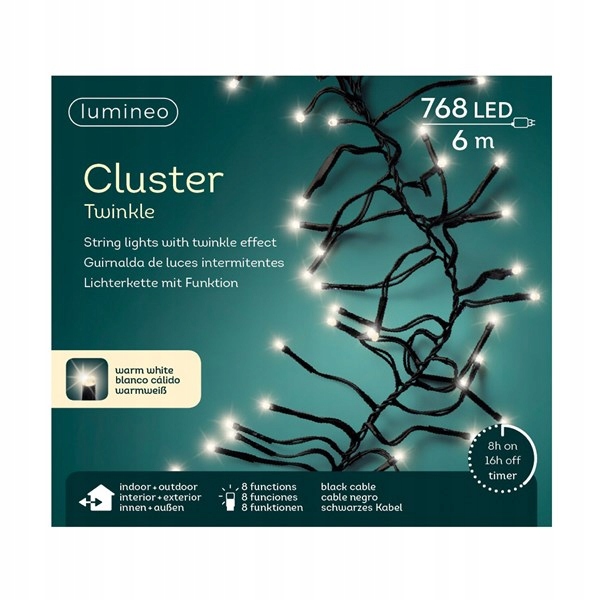 Lampki świąteczne sprawdzą się zarówno na choinkę wewnątrz jak i na zewnątrz domu. Światełka bożonarodzeniowe mają klasę IP44, co oznacza, że przeznaczone są także do zewnętrznych dekoracji domu. Produkt posiada aż 8 trybów migotania.