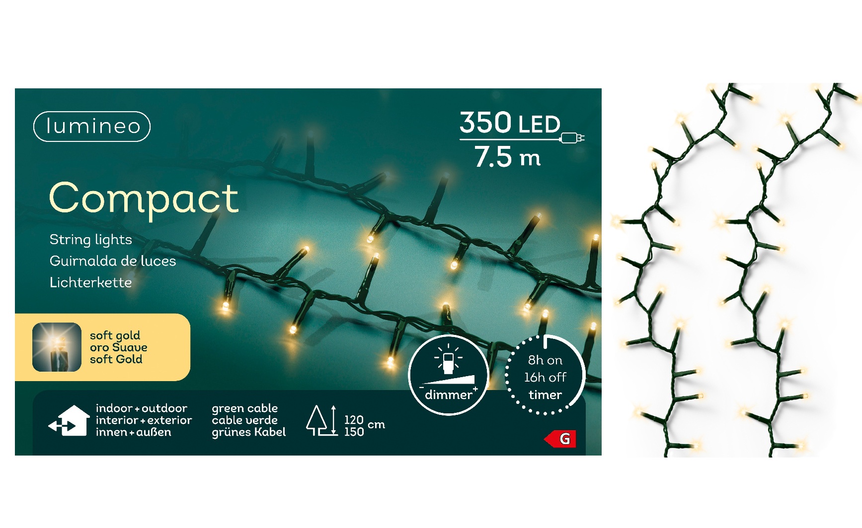 Stwórz magiczną, świąteczną atmosferę dzięki klasycznym lampkom choinkowym LED o długości 7,5 m. Wyposażone w 350 ciepłych białych diod, emitują przytulne światło, idealne do dekoracji choinki, okien, balustrad czy wnętrz.