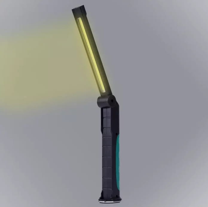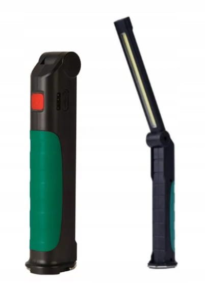 ✅ Wielofunkcyjność: Latarka oferuje świecenie zarówno czołowe, jak i wzdłuż rozkładanego ramienia, co pozwala na oświetlenie dużych powierzchni roboczych.