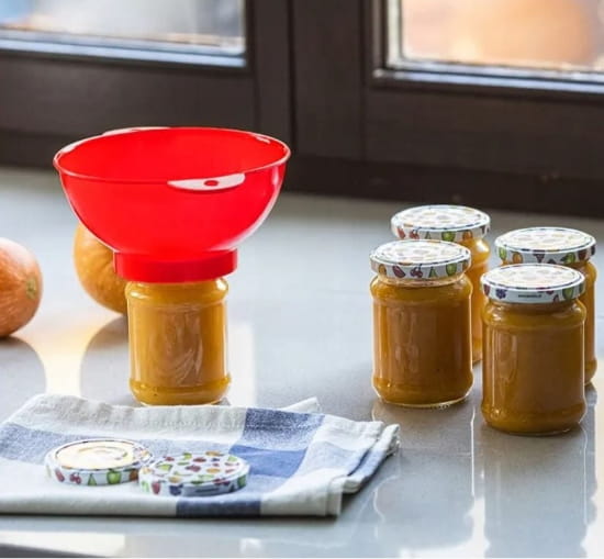 Lejek z wysokiej jakości tworzywa sztucznego, przystosowanego do kontaktu z żywnością, jest praktycznym i stylowym narzędziem w każdej kuchni. Charakteryzuje się klasycznym designem, prostym kształtem i modną kolorystyką, idealny do przygotowywania domowych przetworów.