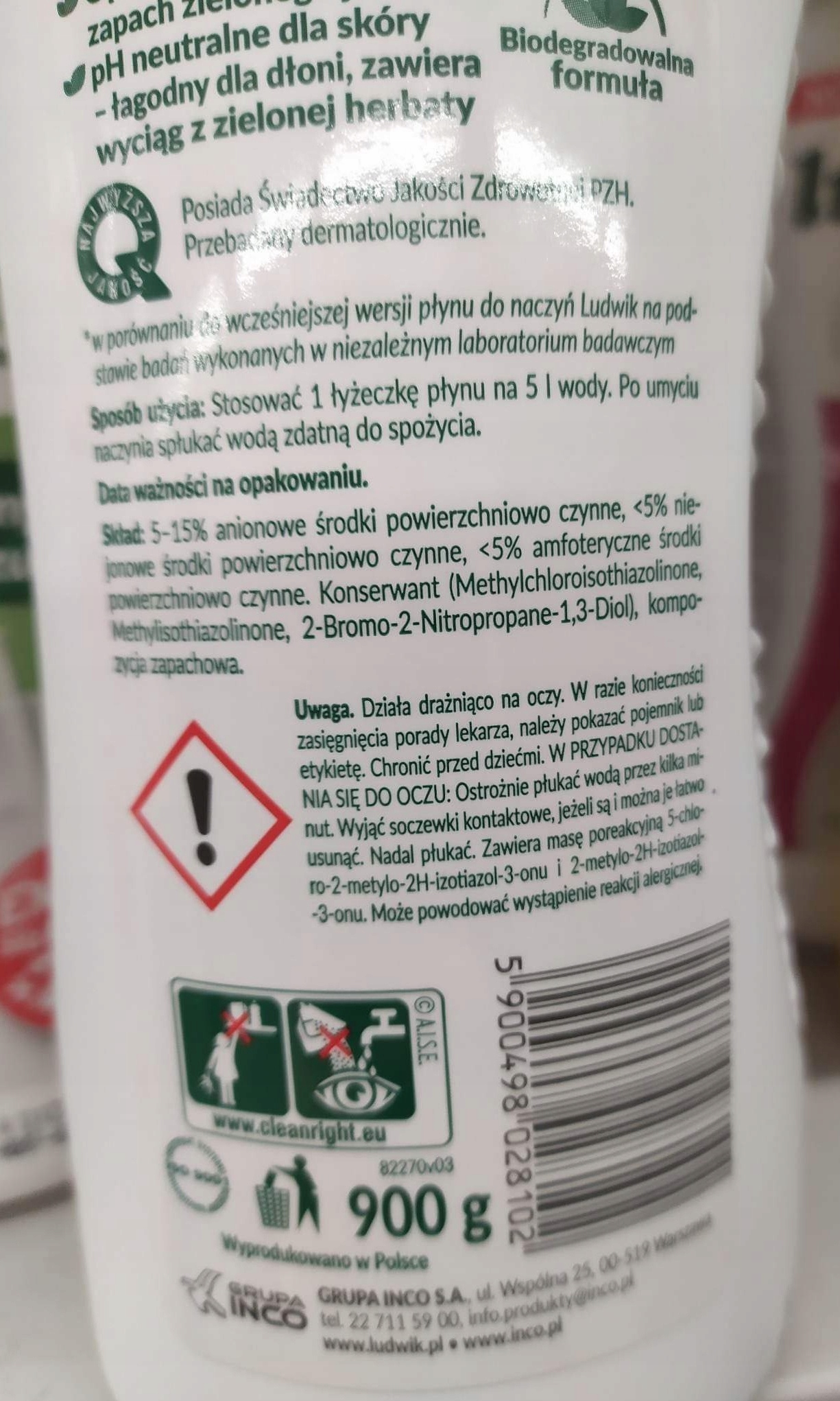 Ludwik płyn do mycia naczyń zielone jabłuszko 900g