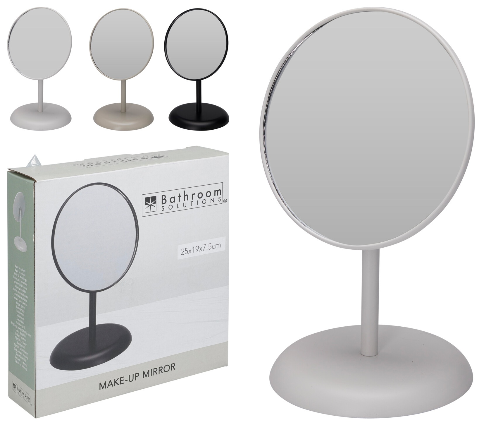 Stabilny metalowy stojak malowany proszkowo gwarantuje trwałość i estetyczne wykończenie. Prosty, nowoczesny design sprawia, że lusterko doskonale wpisuje się w różne aranżacje wnętrz, a kompaktowy rozmiar pozwala wygodnie ustawić je nawet na niewielkiej powierzchni.