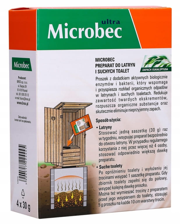 Microbec Ultra to preparat w postaci proszku, który łączy aktywne bakterie i enzymy przeznaczone do rozkładu organicznych odpadów w suchych toaletach i latrynach.