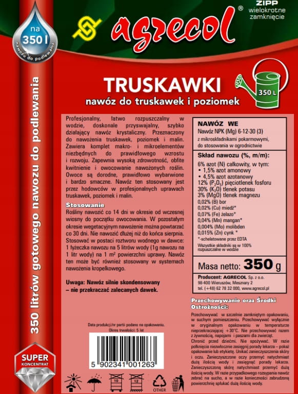 Nawóz krystaliczny AGRECOL to profesjonalne wsparcie dla Twoich truskawek, poziomek i malin!