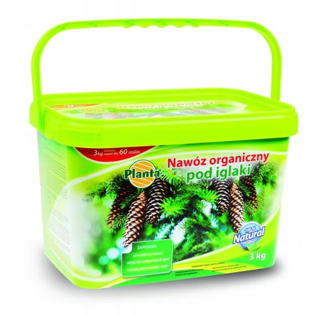 BIO Nawóz Organiczny PLANTA to w 100% naturalny środek pielęgnacyjny, wyprodukowany na bazie obornika kurzego. Jest bezchlorkowy, wolny od metali ciężkich, co czyni go doskonałą alternatywą dla tradycyjnych nawozów chemicznych. Regularne stosowanie zapewnia iglakom odpowiednie odżywienie, intensywne wybarwienie igieł oraz odporność na choroby i czynniki atmosferyczne.
