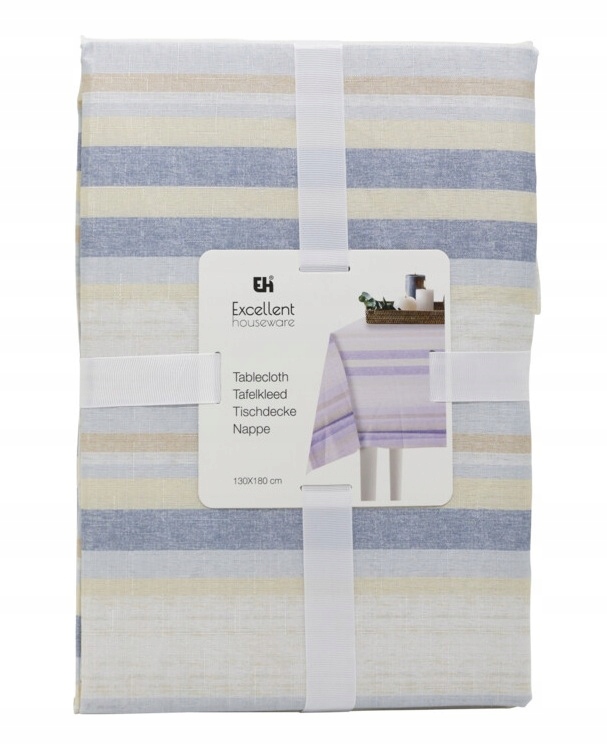 Obrus dekoracyjny na stół letni w kolorowe paski niebieski 130x180cm 1szt