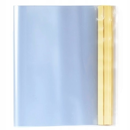 Okładkasamoprzylepna wykonana jest z wysoko przezroczystej folii oraz posiada paski przylepne o szerokości 12 mm. Folia jest gruba, dzięki czemu są one bardzo trwałe i odporne na uszkodzenia.
