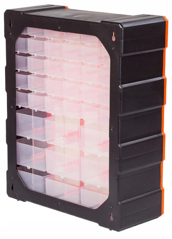 Organizer warsztatowy plastikowy 39 szuflad ścienny pomarańczowy