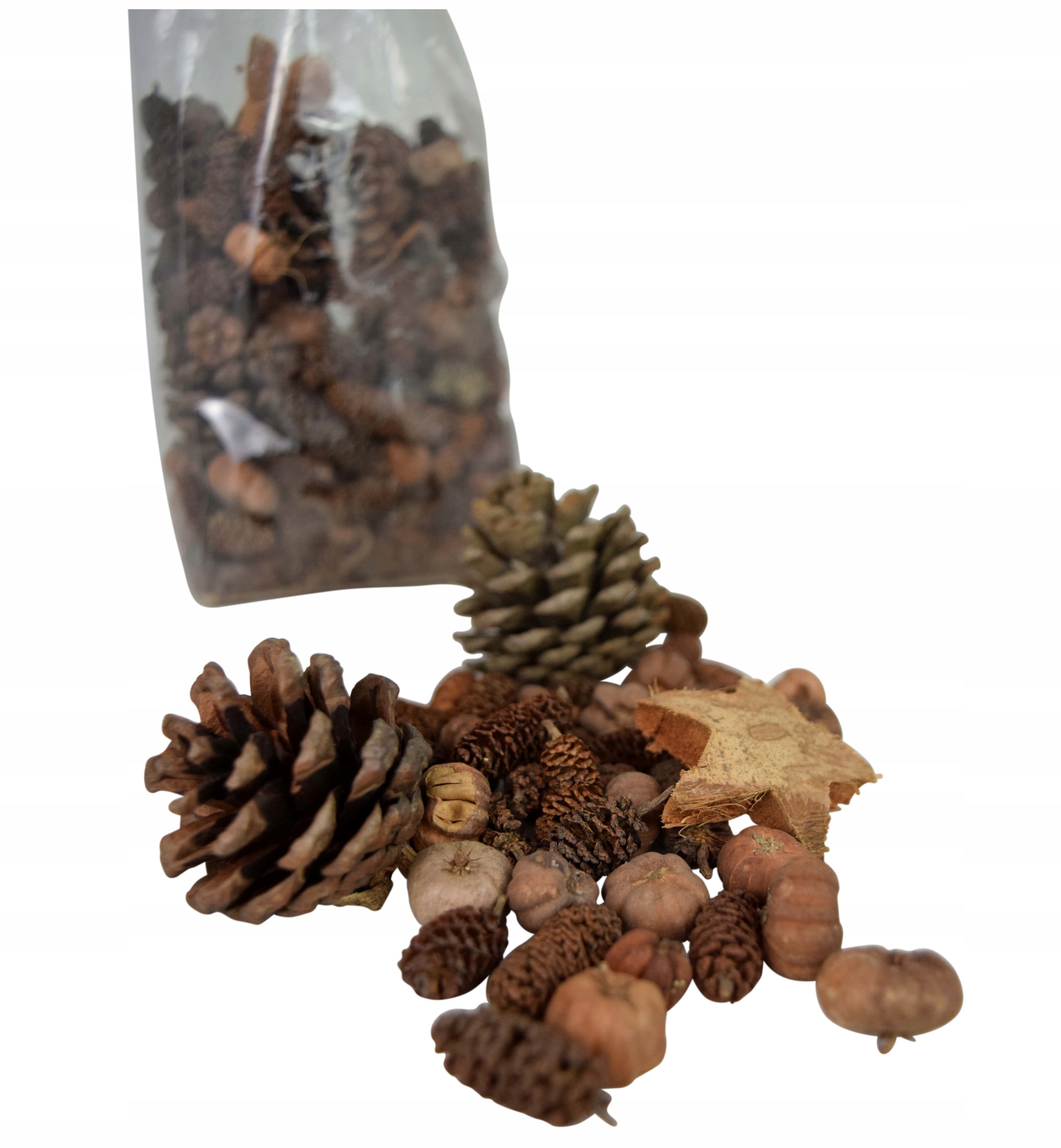 Zestaw świąteczny w postaci szyszek i innych ozdób lasu stanowi niezwykle oryginalne uzupełnienie wystroju świątecznego wnętrza. Produkt nada się jako element kompozycji lub samodzielna ozdoba. Elegancka dekoracja podkreśli wyjątkowy charakter świąt. Zestaw można wykorzystać do komponowania stroika świątecznego.