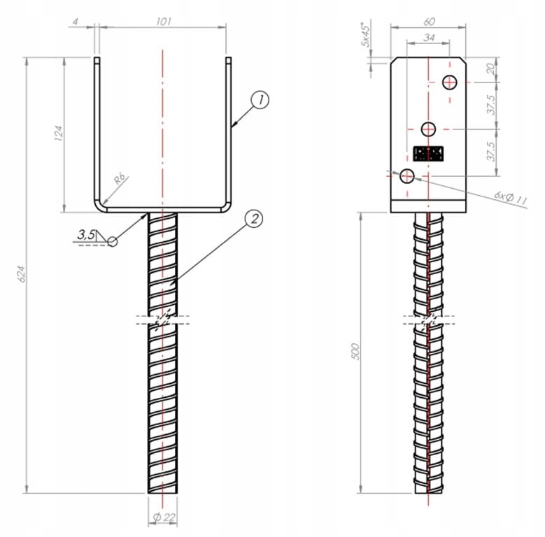 Podstawa słupa kotwa ocynkowana 101x624x124mm