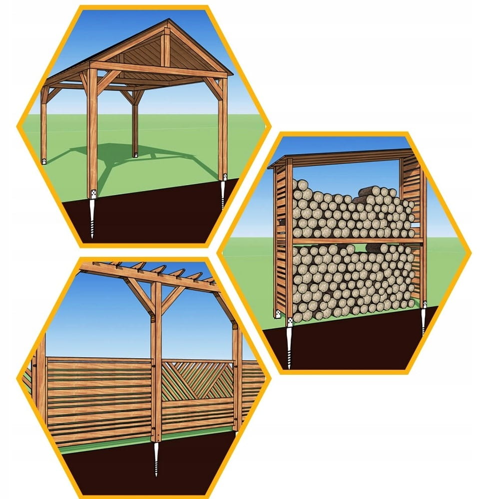 ⭐ Kotwa wkręcana zapewnia solidne i stabilne umocowanie słupów drewnianych, co jest kluczowe dla bezpieczeństwa i trwałości konstrukcji.