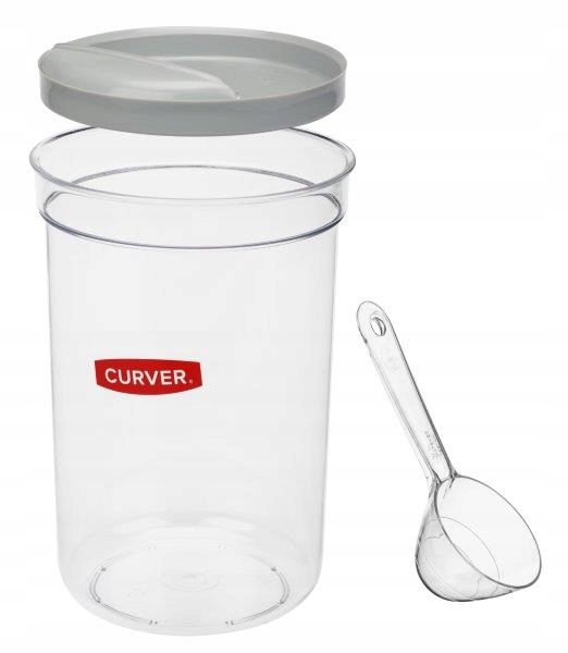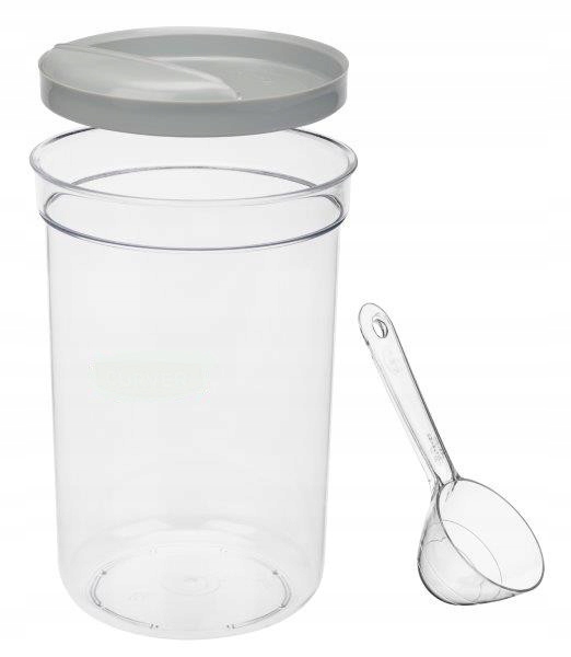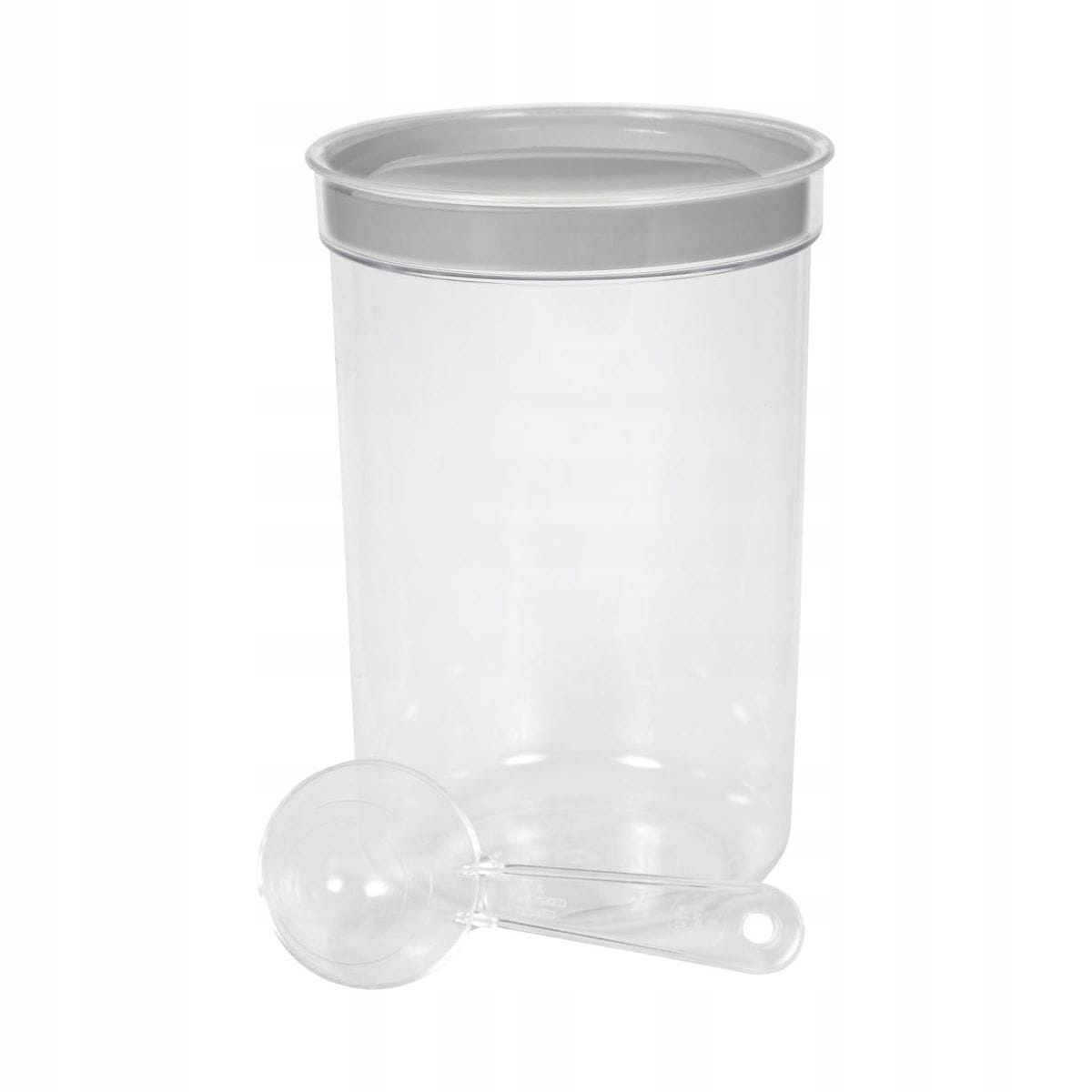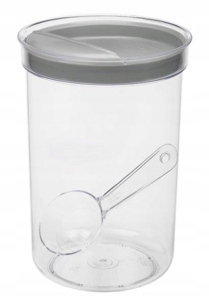 Pojemnik wyposażony jest w praktyczną łyżeczkę, dzięki której dozowanie produktów sypkich, takich jak cukier, kawa, herbata, ryż czy kasza, jest wygodne i higieniczne. Okrągły kształt sprawia, że pojemnik zajmuje niewiele miejsca i dobrze prezentuje się na blacie lub w szafce kuchennej.