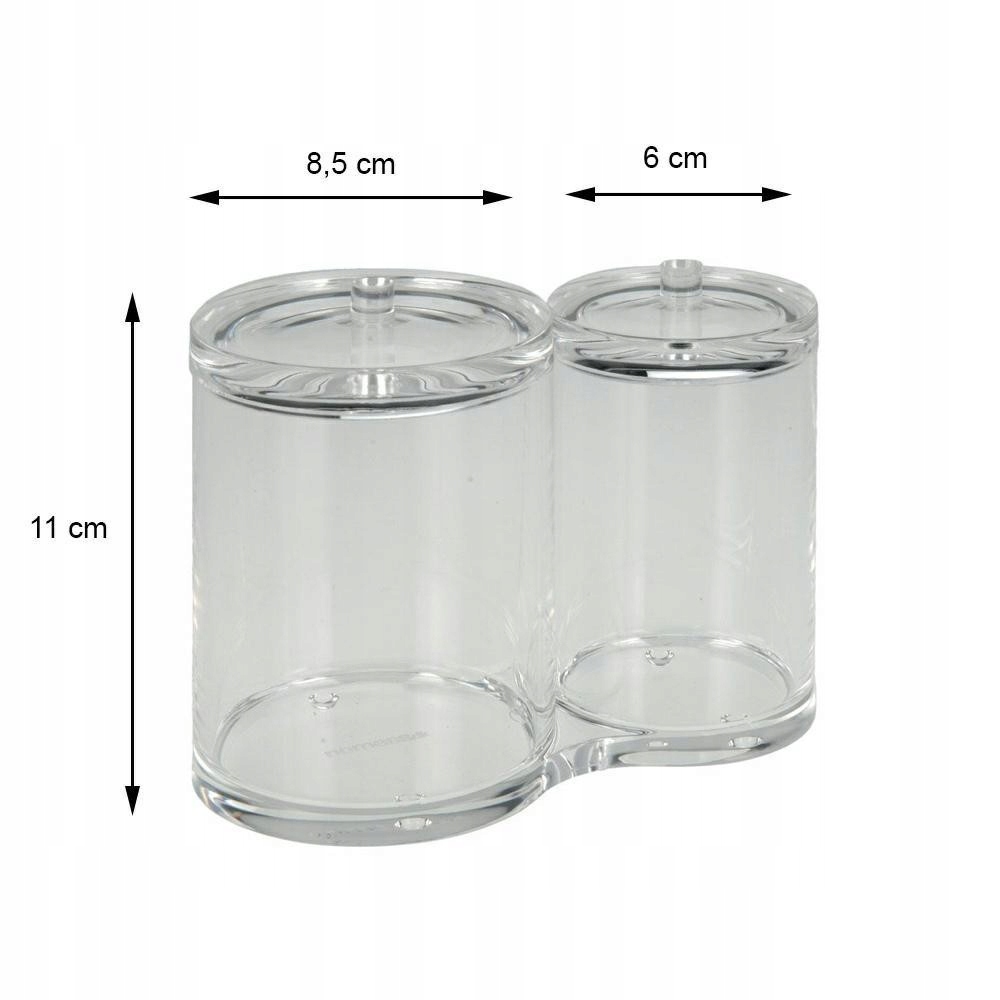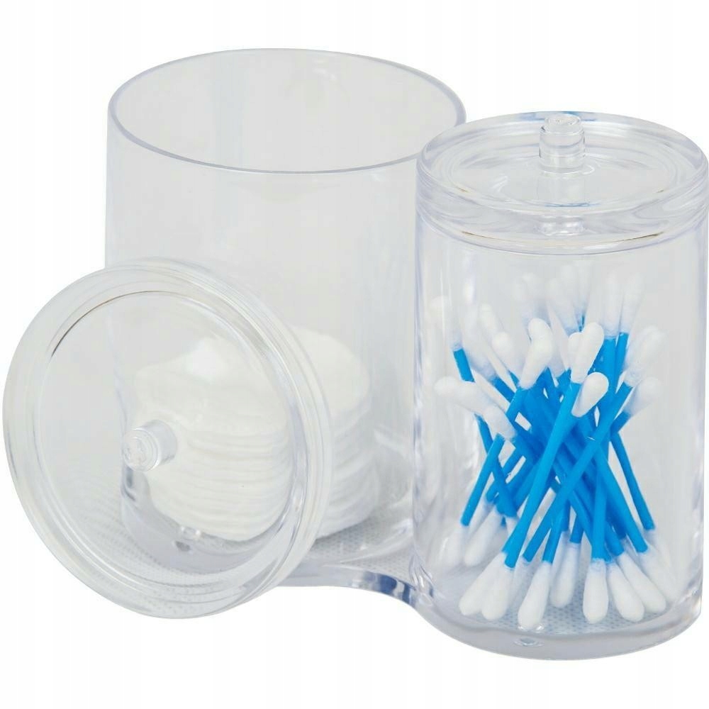 Praktyczny pojemnik kosmetyczny 2w1 to idealne rozwiązanie do uporządkowania akcesoriów łazienkowych. Składa się z dwóch połączonych pojemników z pokrywkami, które umożliwiają higieniczne przechowywanie wacików, patyczków do uszu oraz innych drobiazgów.