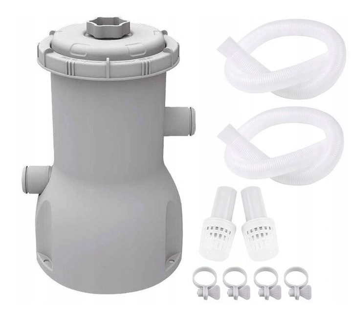 Pompa filtrująca o wydajność 3028 litrów/godz to podstawowe urządzenie do utrzymania czystości twojego basenu, dzięki niej każde spontaniczne wejście do basenu nie skończy się fiaskiem przez zanieczyszczenia. Urządzenie filtrujące cechuje się prostą obsługą oraz znakomitymi efektami swej pracy. Pompa wyposażana jest w wymienny filtr kartuszowy (w zestawie załączona jest jedna sztuka). Filtry należy wymieniać średnio co tydzień/dwa w zależności od stopnia zużycia filtra. Możemy też wydłużyć trochę żywotność takiego filtra, przemywając go pod bieżącą wodą bez używania chemii.