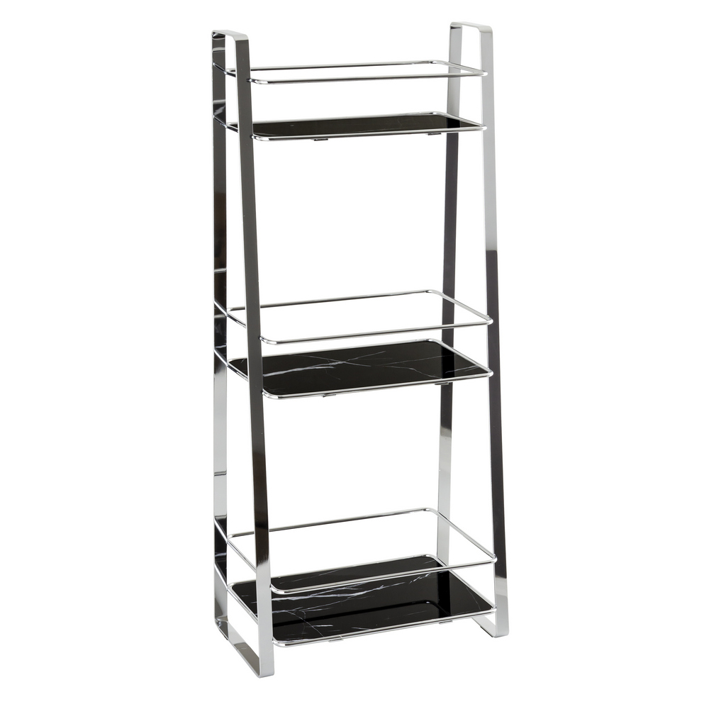 Regał łazienkowy metalowy trzy poziomy chrom czarny marmur 65cm