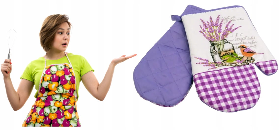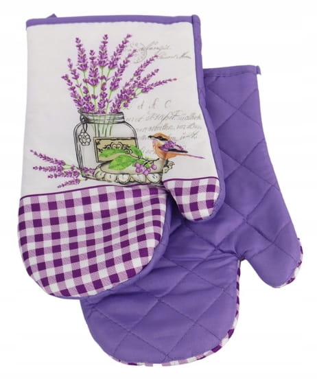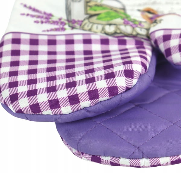 Rękawice kuchenne to podstawowy element każdej kuchni. Odkryj radość z gotowania dzięki rękawicom kuchennym Lavender II z efektownym motywem ptaszka i kwiatów lawendy. Nadają się jako dekoracja, a jednocześnie są bezpieczną opcją do przenoszenia gorących naczyń.